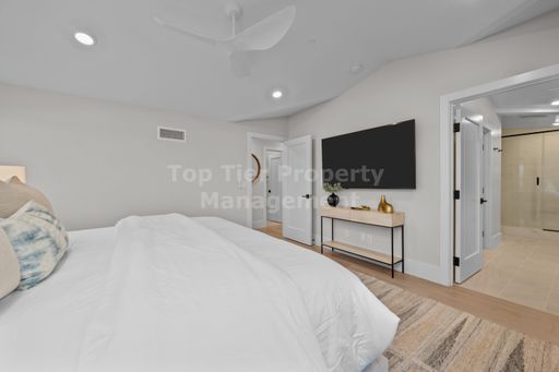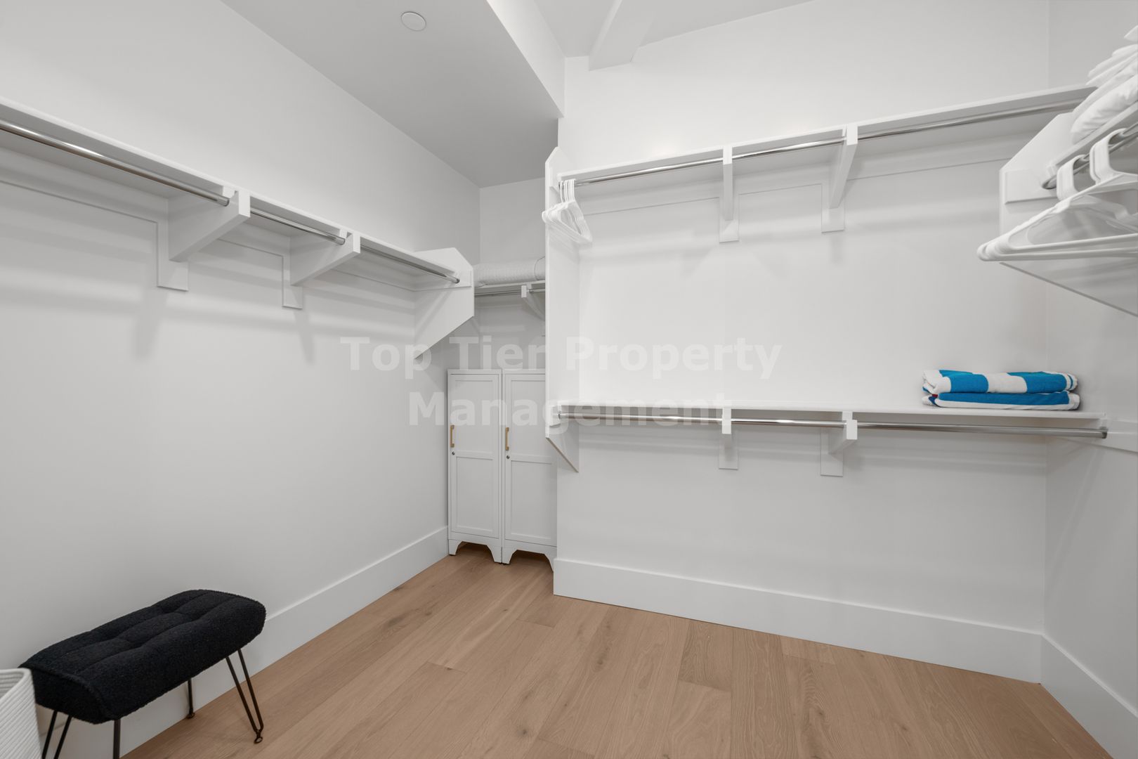 -Upstairs, the primary suite boasts vaulted ceilings, custom built-ins, a large walk-in closet, and a spa-inspired bathroom with a luxurious shower and upscale finishes