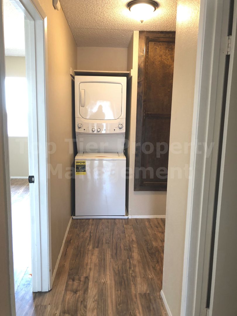 -Laminate flooring throughout. Easy to clean!